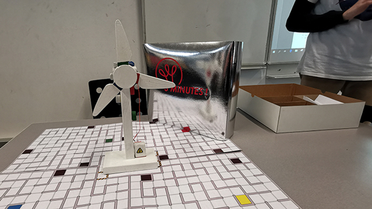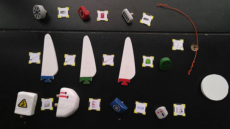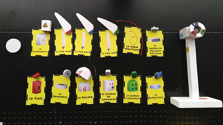 Les pièces de l'éolienne juxtaposées aux jetons correspondant