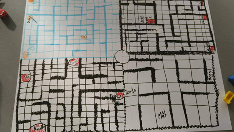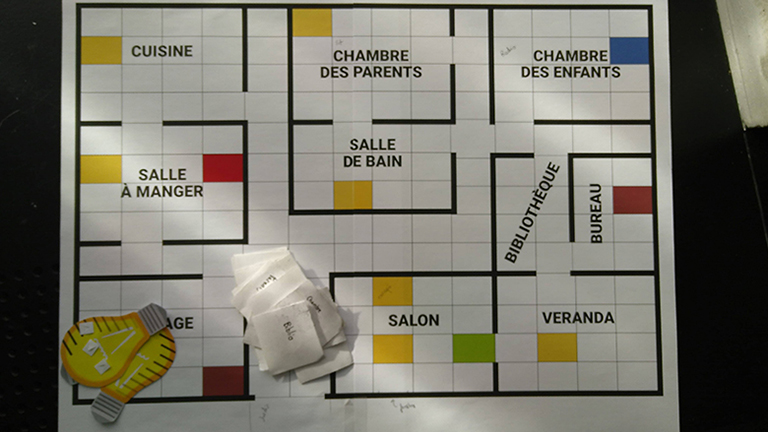 Cependant, nous avons été rapidement freinés par divers problèmes, en particulier sur la façon de trouver cette lumière allumée : Comment faire interagir les joueurs entre eux, pour qu’ils la découvre, sans plagier sur le système du Cluedo ?