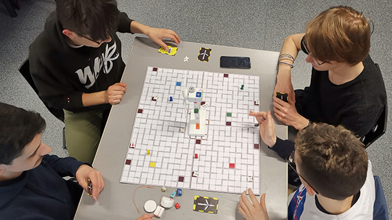 Ces tests nous ont également fourni des pistes de jeux à créer, en nous présentant notamment le système de jeu collaboratif : on ne joue pas les uns envers les autres, mais pour répondre à un objectif commun. Cette façon de jouer coïncide avec le thème, car nous sommes tous concernés par l’environnement et son avenir.