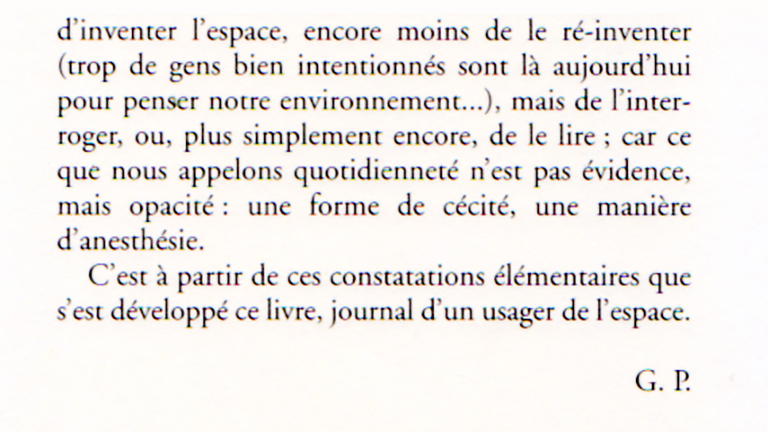 "Prière d'insérer" pour "Espèces d'espace" de Georges Perec