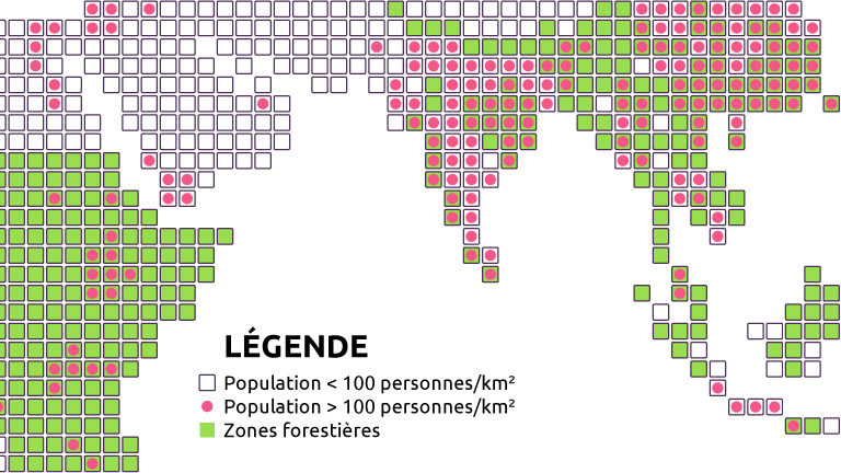 Cette cartographie forestière et démographique du monde a pour but de comprendre comment l’Homme cohabite avec la forêt.