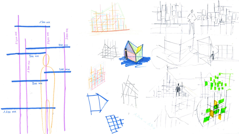 Croquis de recherches sur la structure ainsi que l'étude des mesures