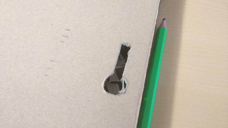 Afin d’accrocher efficacement ces murs à la structure, mais surtout de pouvoir les décrocher, nous avons imaginé un système très simple mais astucieux. En fixant une vis dans les tasseaux, cela nous permettra d’enfoncer le mur, puis de laisser faire la pesanteur. Le principe est de rentrer la tête de la vis, qui est plus large que son corps, dans un trou tout aussi large, puis de laisser glisser le mur vers le bas, grâce à la gouttière, qui est plus mince que la tête de la vis.