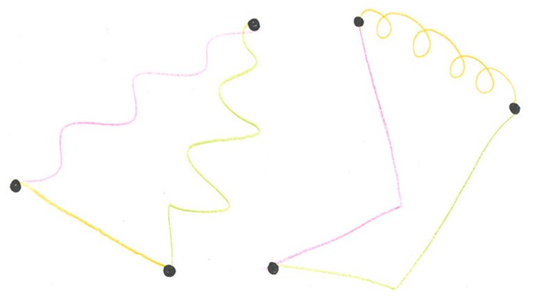 Lorsque l’atelier est fini, nous récupérons les différents dessins réalisés par les usagers. La carte sensible du quartier sera reconstituée, comme un puzzle, et les différentes lignes seront superposées afin de créer un logo. Nous pourrons également créer un Gif animé faisant défiler les sentiments des gens, afin de créer l’identité de quartier.