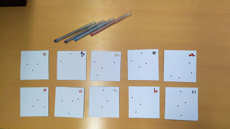 L’usager une fois avoir testé chacune des animations, passe à la deuxième étape de l’atelier, à savoir la restitution de ses sentiments. En effet, des feuilles sur lesquelles des points spécifiques de la carte du quartier auront été placés seront mises à disposition. L’usager pourra en choisir une, selon l’animation qu’il aura préféré. Le but du jeu sera ensuite de relier les points avec des lignes et des couleurs différentes, selon le ressenti qu’aura provoqué le bruit (ligne droit, zigzag, vague…)